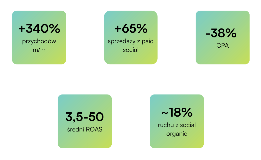 Kluczowe było połączenie działań performance’owych z równoległą budową zaufania, co pozwoliło skrócić ścieżkę zakupową i przyspieszyć skalowanie sprzedaży.